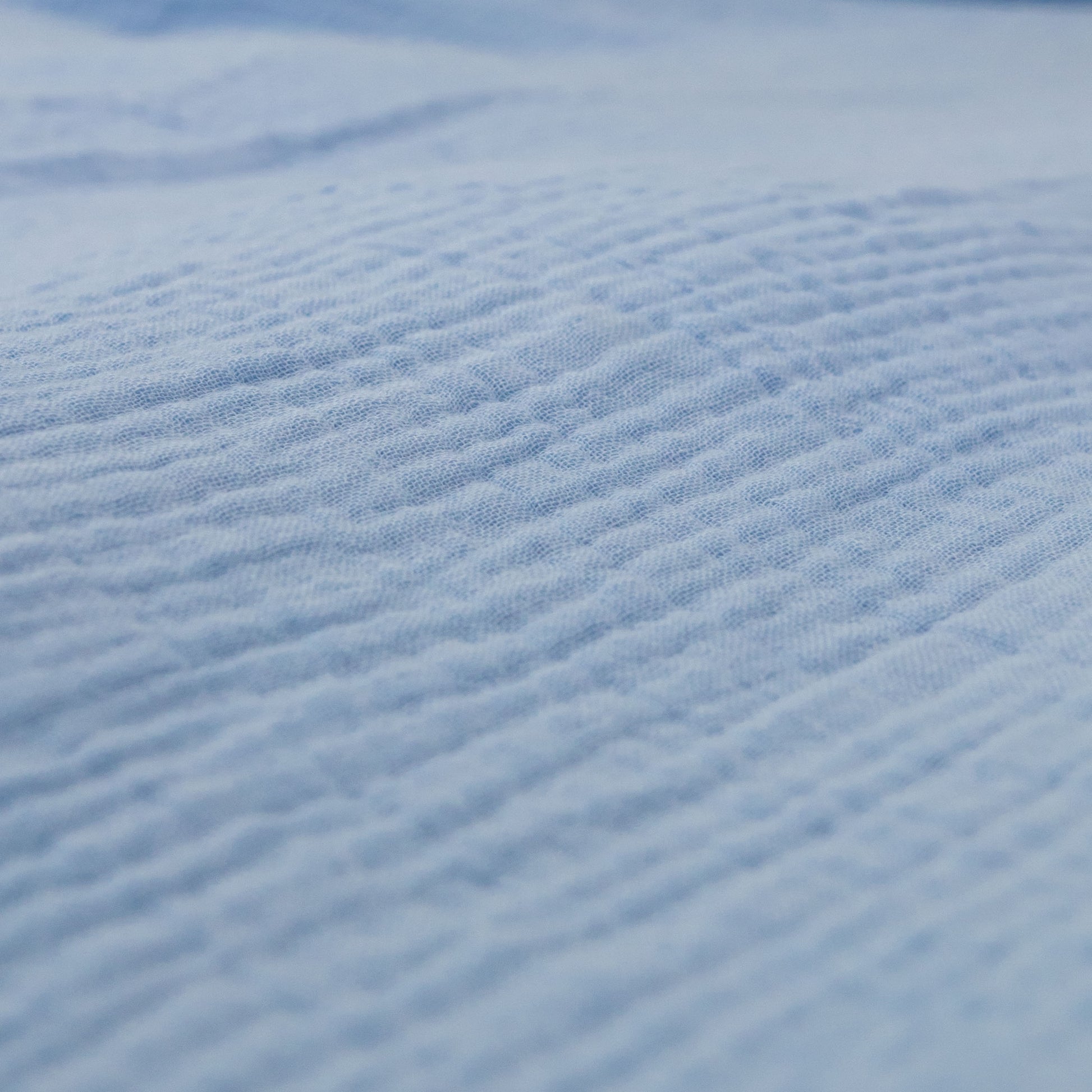 Våre sengetøysett i bomullsmuslin er laget av 100 % bomull og vil bare bli mykere med tiden. Den løse vevingen gir naturlig pusteevne, mens det krøllete utseendet gir et avslappet og stilig utseende.