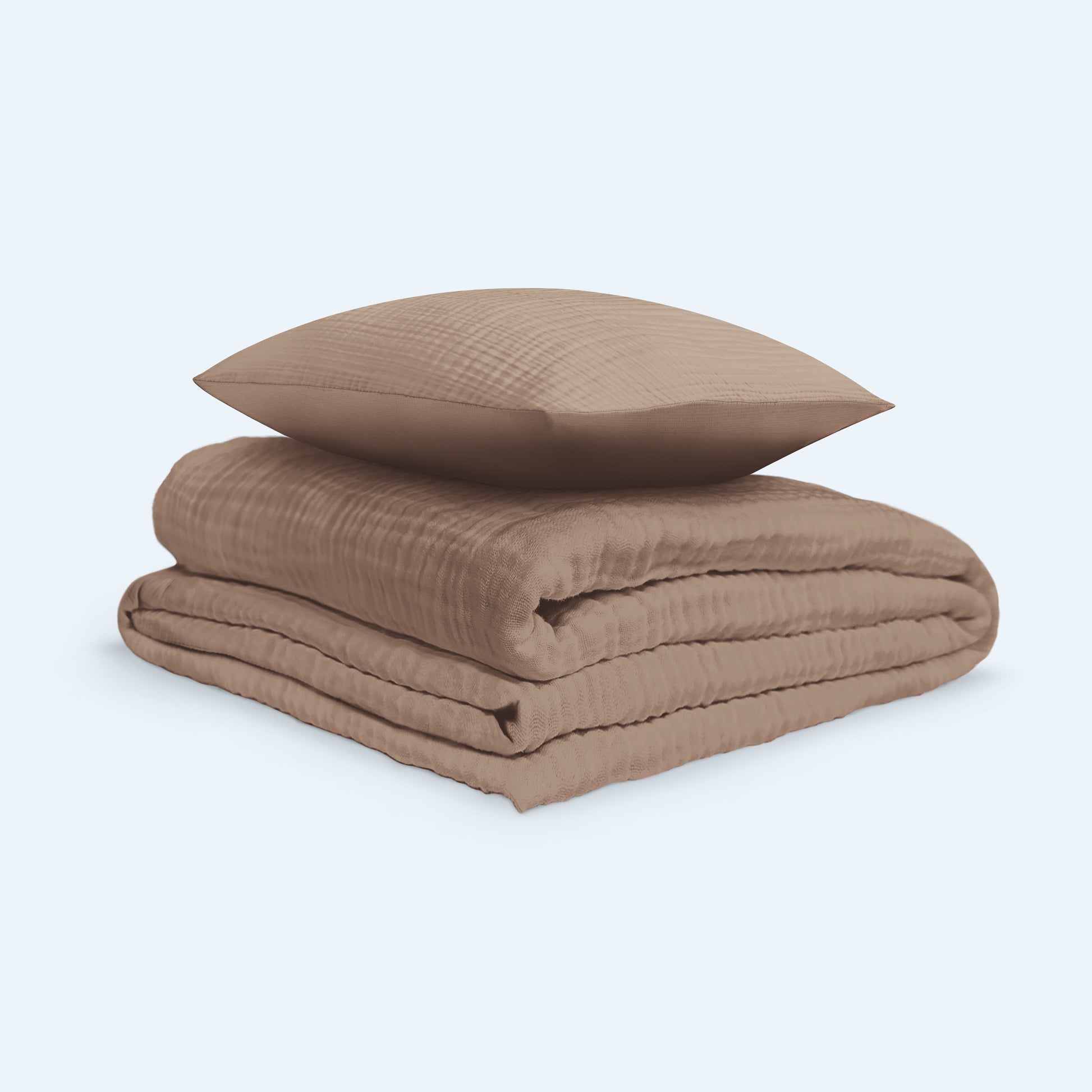 Den luftige muslinveven gir en naturlig myk følelse som blir enda bedre med hver vask.
