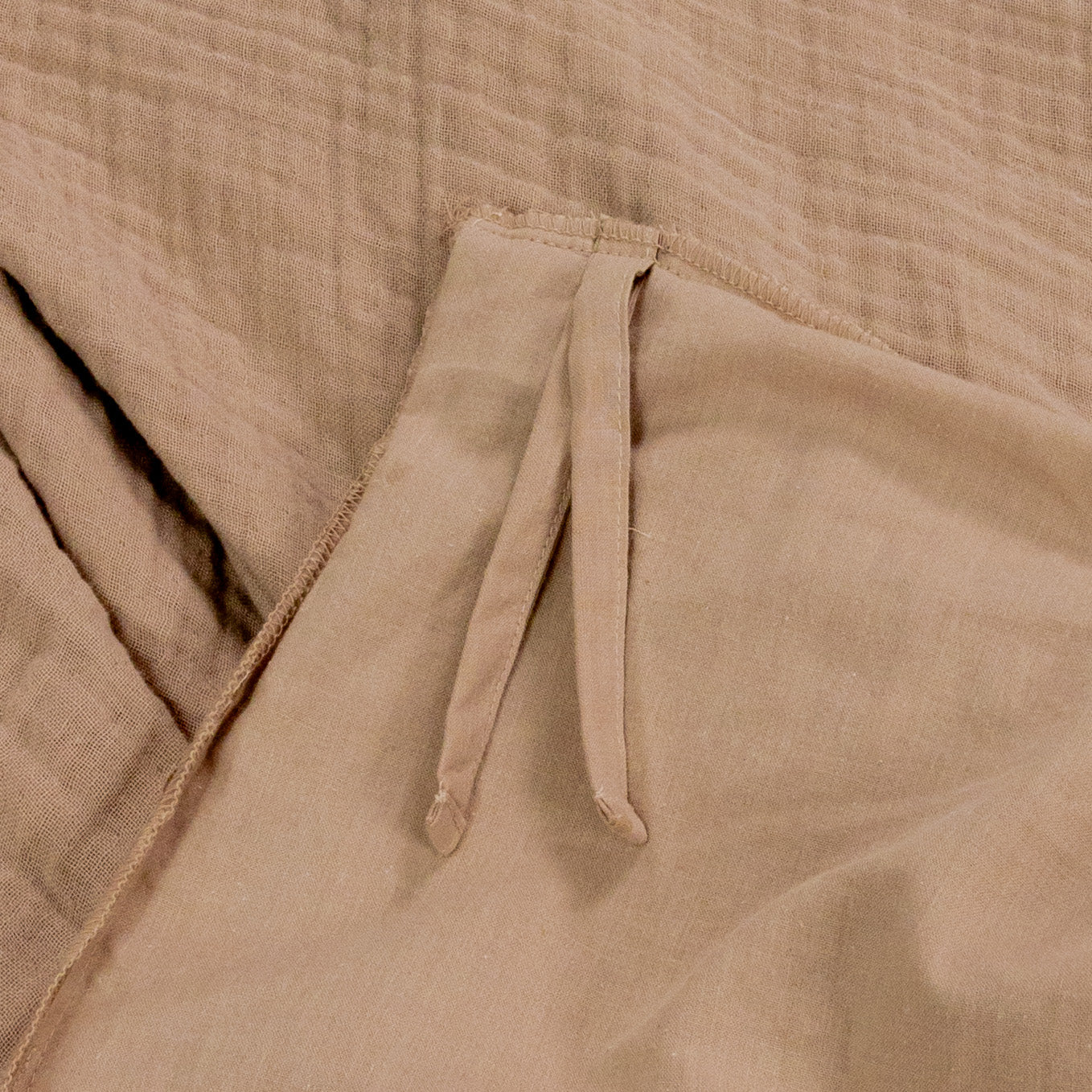 Materiale: 100 % økologisk bomullsmuslin-gaze på den ene siden og 100 % økologisk bomull på den andre siden.